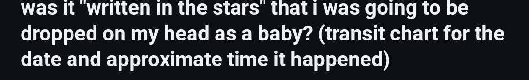 funnily enough it actually is, transiting moon conjunct natal chiron at the time it happened