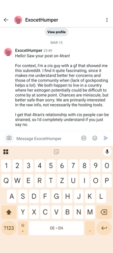 tell the cis guy to make his gf contact you directly