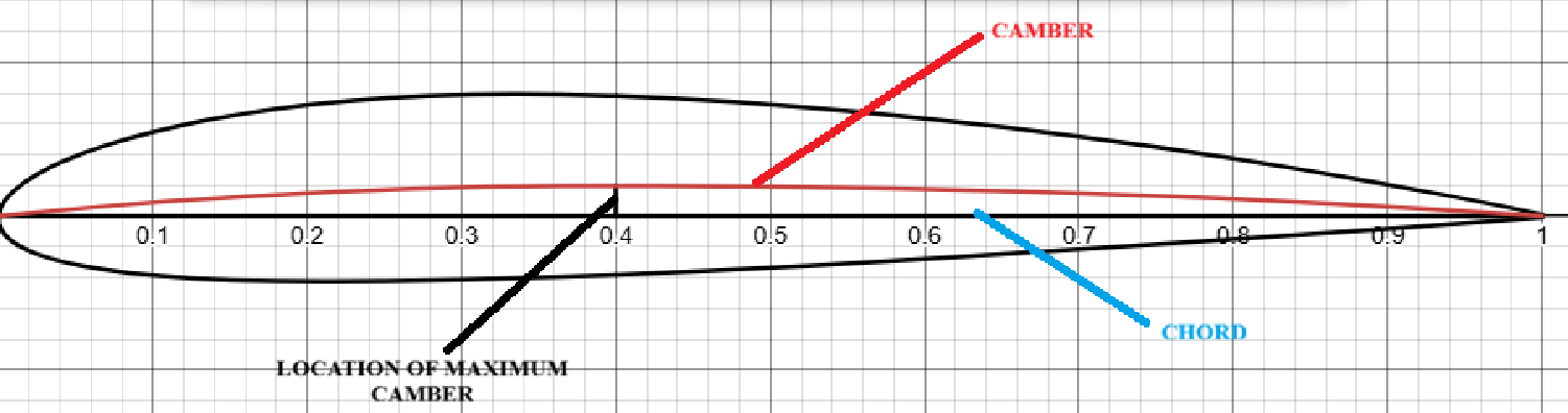 The second digit is a tenth of the location of the maximum camber height along the length of the airfoil, as a percent of the chord length.