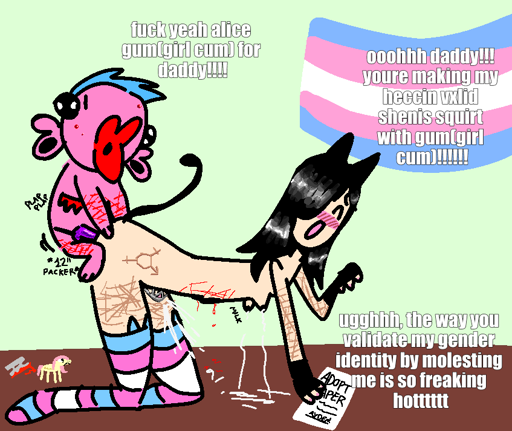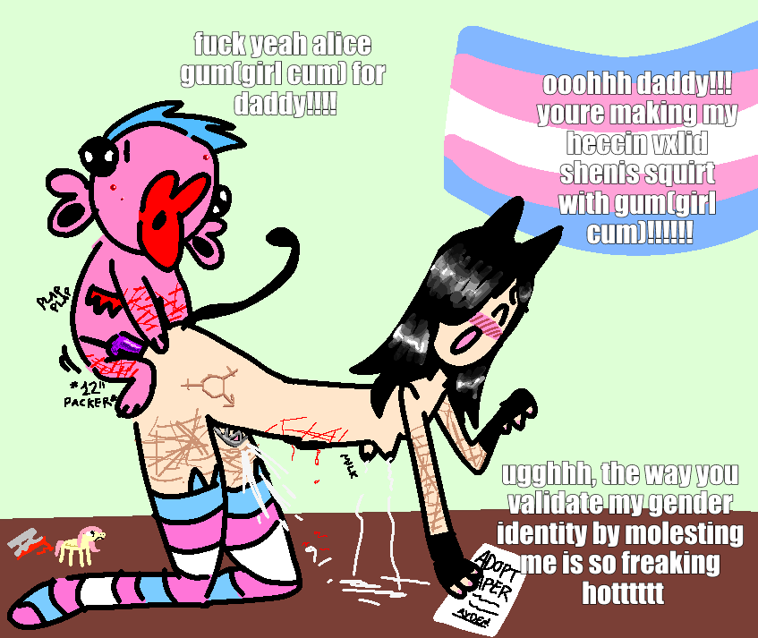 81qe05q7 to 4tran4 · 1 month agoNow that there is no censorship anymore here's the idea: st4t incest where a trans woman with no father gets adopted by a pooner who helps her have the girl childhood she always wanted.NSFWimagemessage-square9linkfedilinkarrow-up118arrow-down13file-text