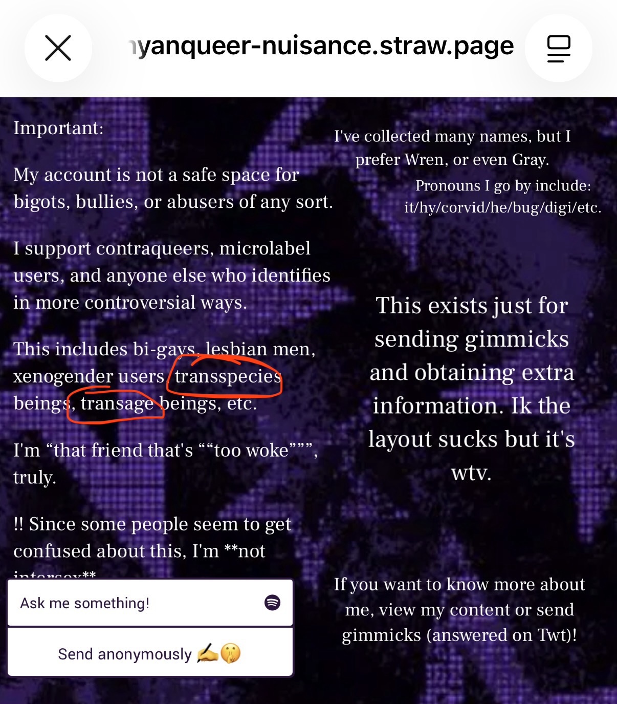 Also also, there’s stuff on the LGBTQIA+ miraheze wiki that I’m not sure whether isn’t satire like Recursive Pronouns, which is so insane it loops around to being low-key cool again