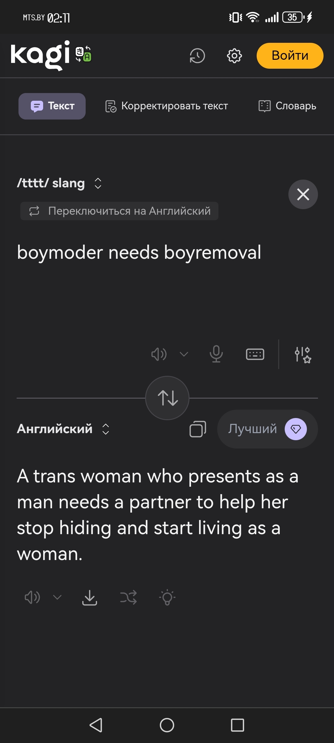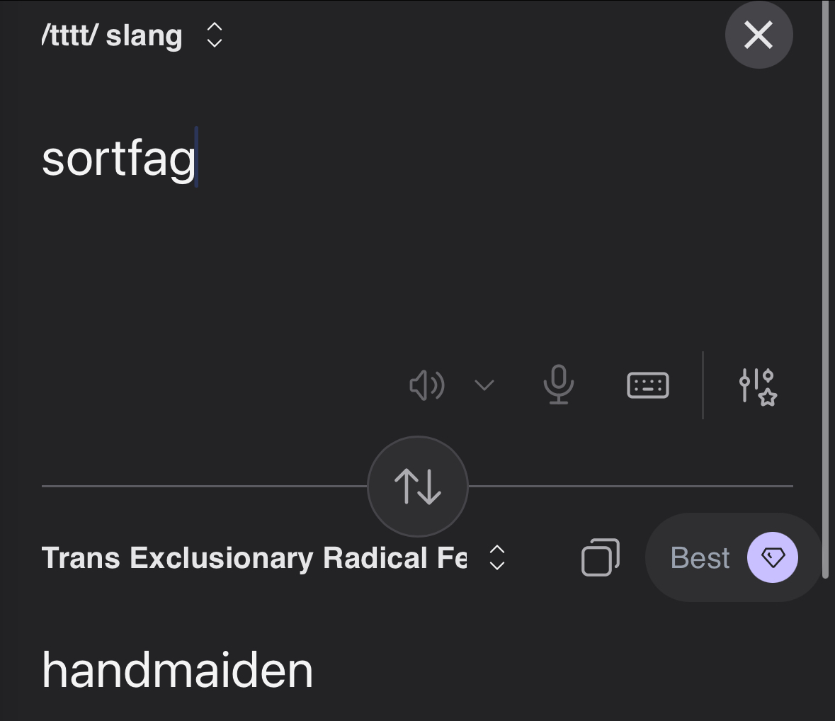 It will let you put whatever you want in the bottom language field and then u can hit the swap button to move it up to the translating from field.
