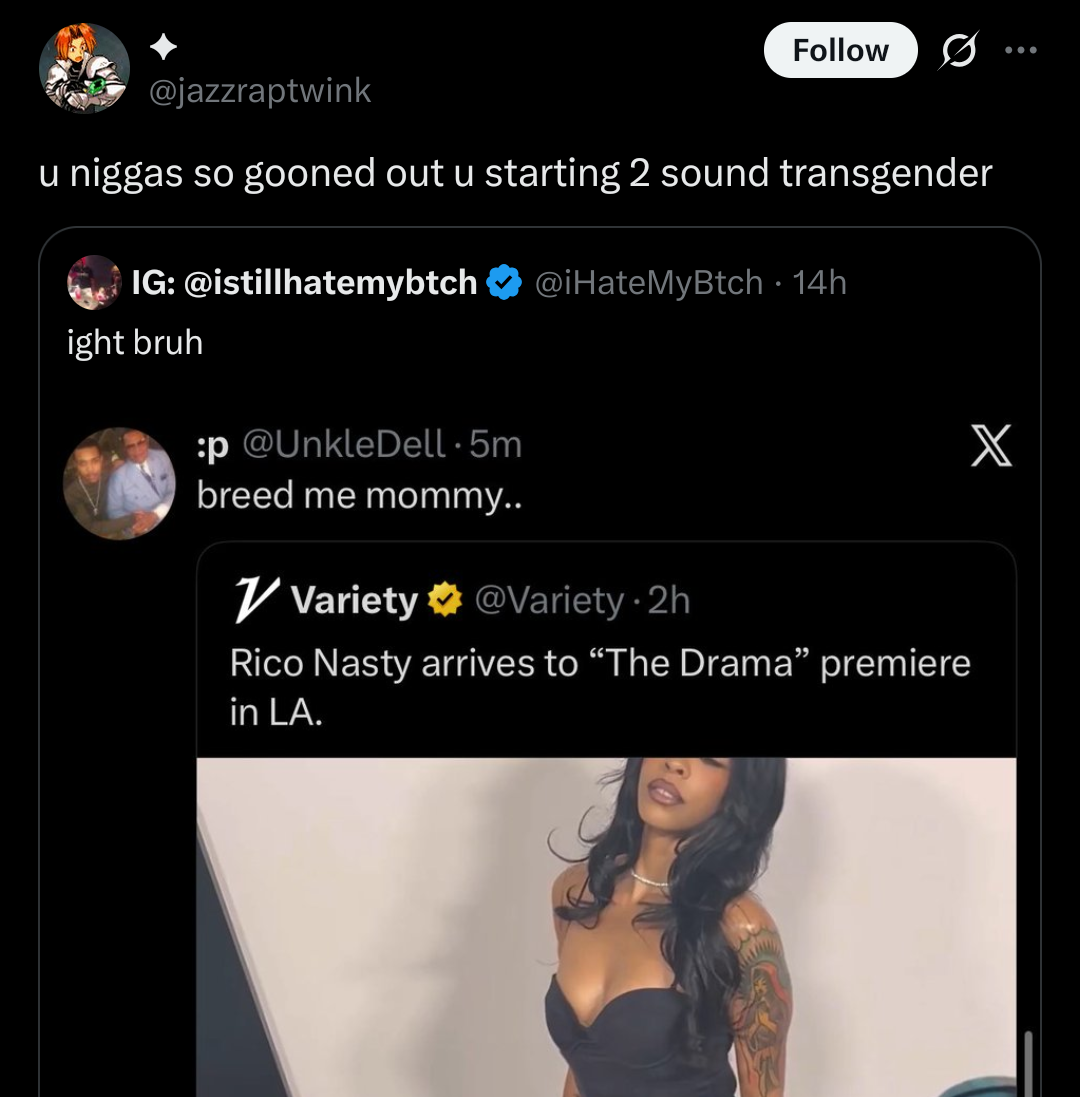 minus-squareFoxylinkfedilinkarrow-up9·19 days agoew this is so gross. we are all gross gooners ig. love xitter trannys for the optics