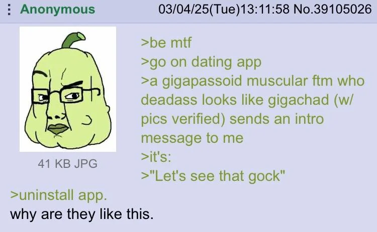 Ștefan to 4tran · 15 days agoPoonchad exhibits cis male behaviorimagemessage-square1linkfedilinkarrow-up127arrow-down10