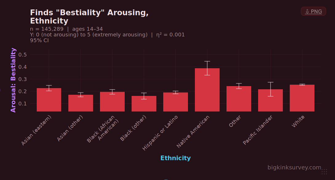 Native American spike in beastiality is intriguing and confusing, I wonder if it’s because of tiny sample size