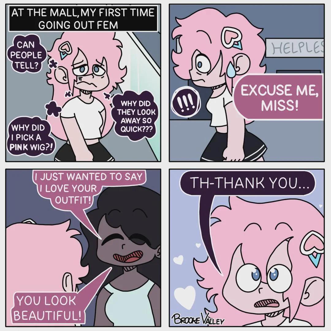 this happened once but ever since i was told that neurotypical cis women tend to say “your XYZ looks good” to actually say it looks bad i keep worming about it (also WHY do they do that??? just fucking say it looks good and mean it or point to the thing youre critiquing or shut tf up)