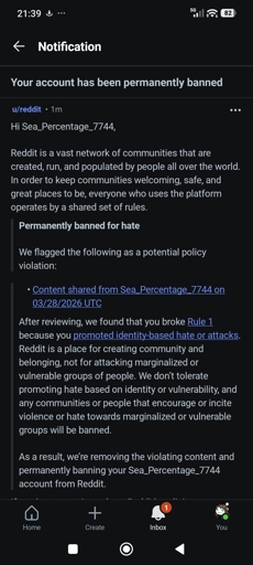 I got banned for bullshit today tooooo! Targeted bans at trans people ong. No where else do people get banned as frequently for saying more obviously bannable shit than is said on 4t4.