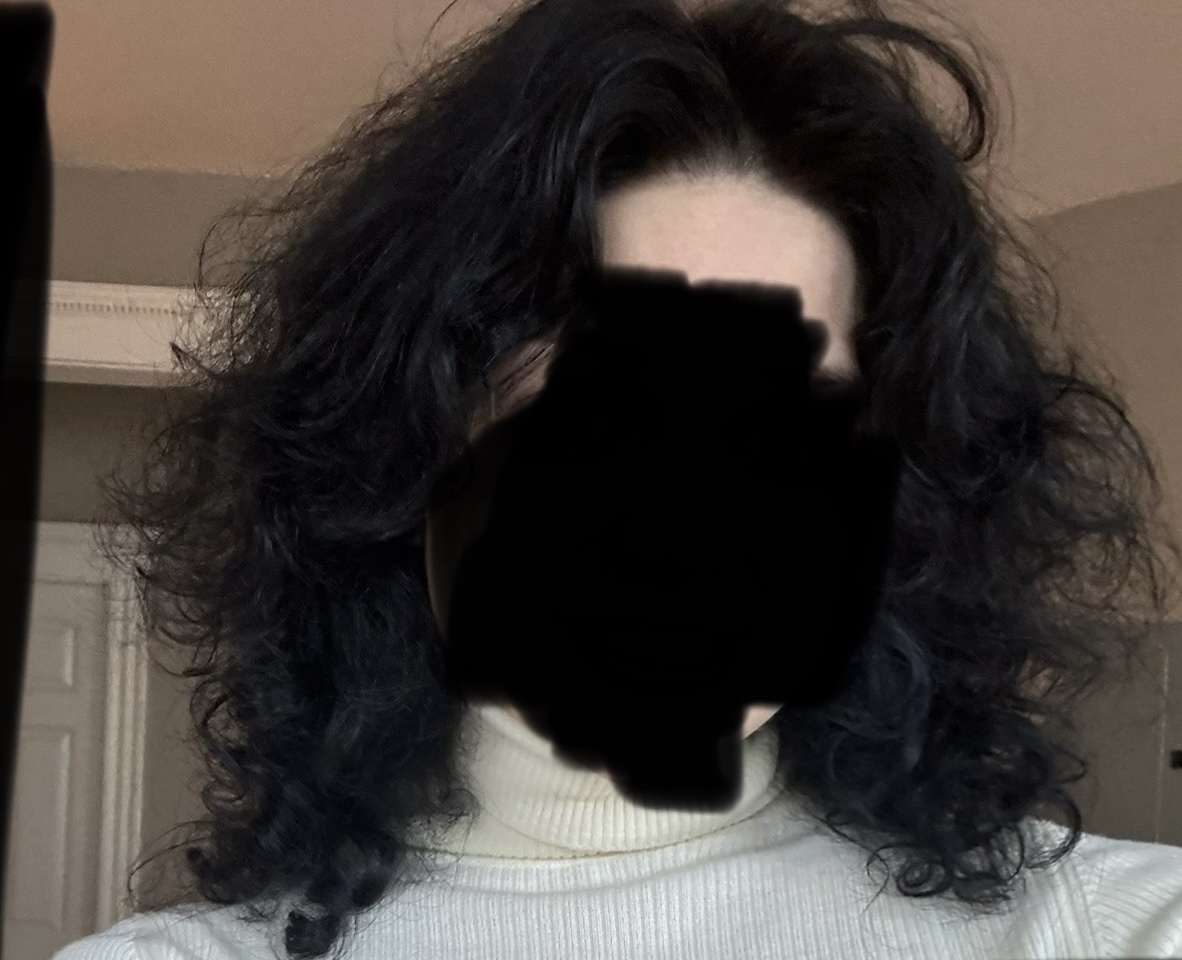 Very dry, very frizzy, split ends… it appears curly despite once having been mostly wavy… that’s how bad it is…