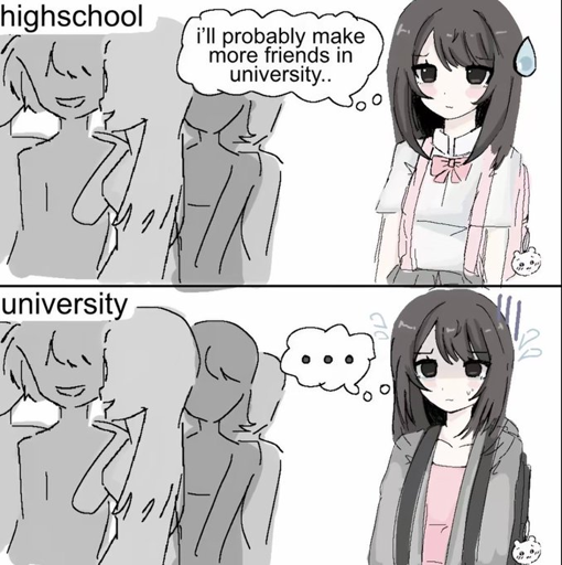 I just remembered… Yeah, I only made one friend, but I was also a prostitute, so this picture is more me at university: