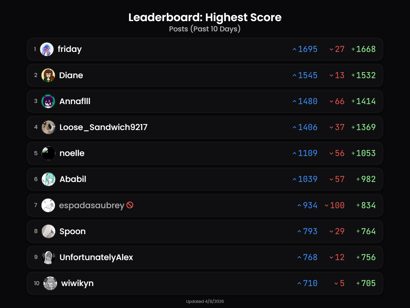 I don’t even appear on the leaderboard, what a shame.