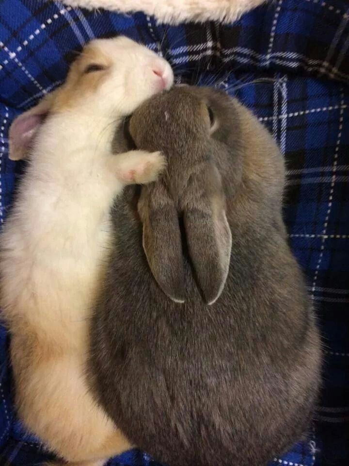 first picture reminds of when bunnies get groomed by kitties, they think they are in charge, but when kitties groom another, they think that they are in charge, so both of them think theyre the dominant boss around town but theyre so silly and confused eeeeeeeeeeeeee