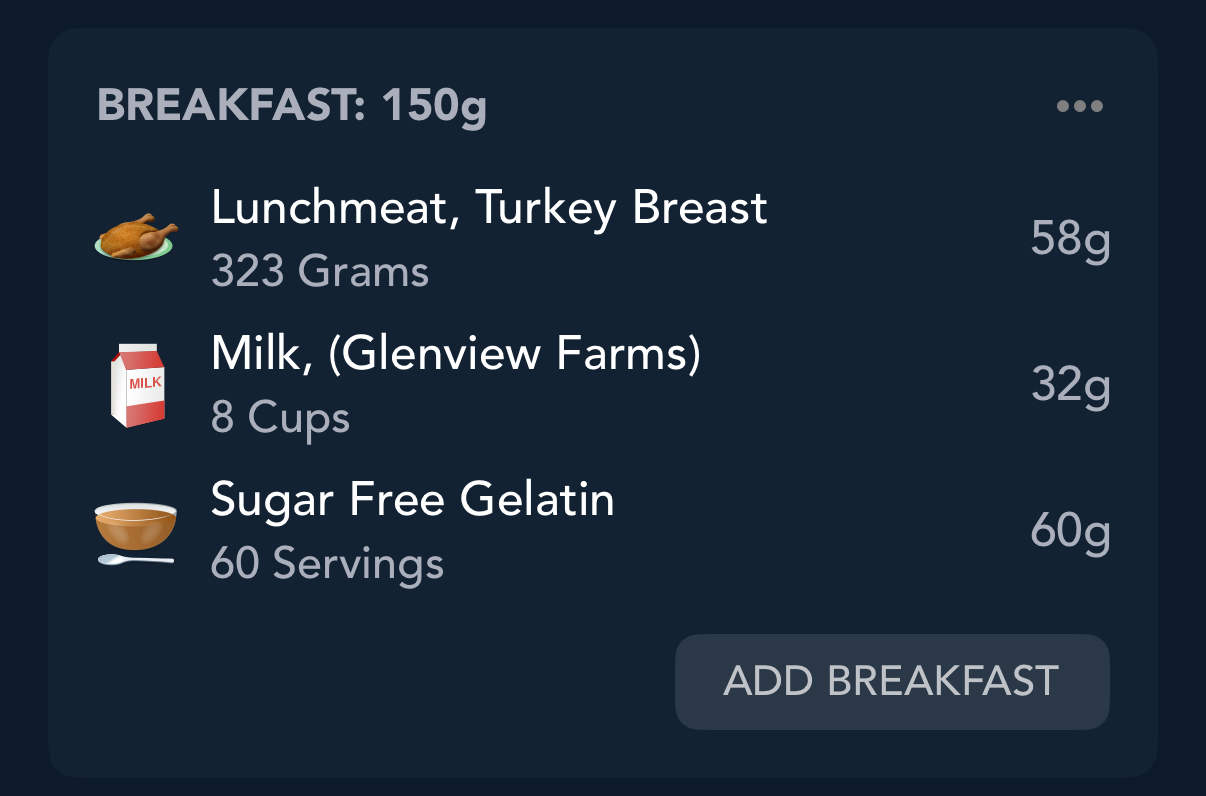 This combo: 300 grams of turkey, half a gallon of skim milk, and 60 grams of Gelatin gives me 150 grams of protein and only 1000 calories. And best part, is that this all would be extremely cheap. Maybe 30 bucks a week.