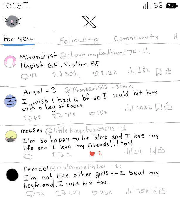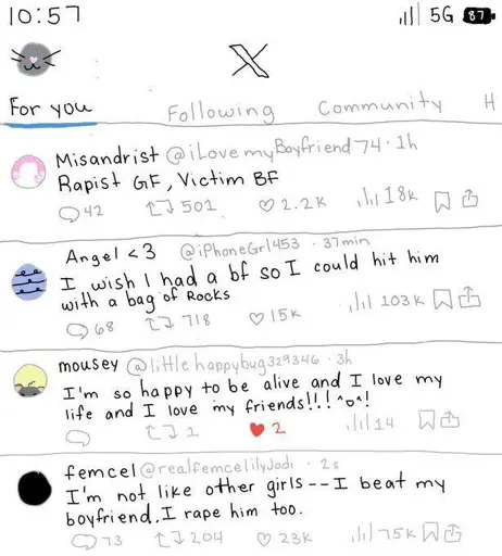 I remember in my impressionable sneedy early high school years (circa 2017 or 2018ish, pre poondemic explosion but FTMs were still gaining steam) lurking around ar slash traa and egg_irl (aka the depths of hell) and seeing NO doods, not even corny ones, and mods having to come in and try to change the atmosphere so doods didn’t feel boxed out. Once enough elbows were thrown that space cleared out for the doods, though, I did start seeing dood posts bubble up