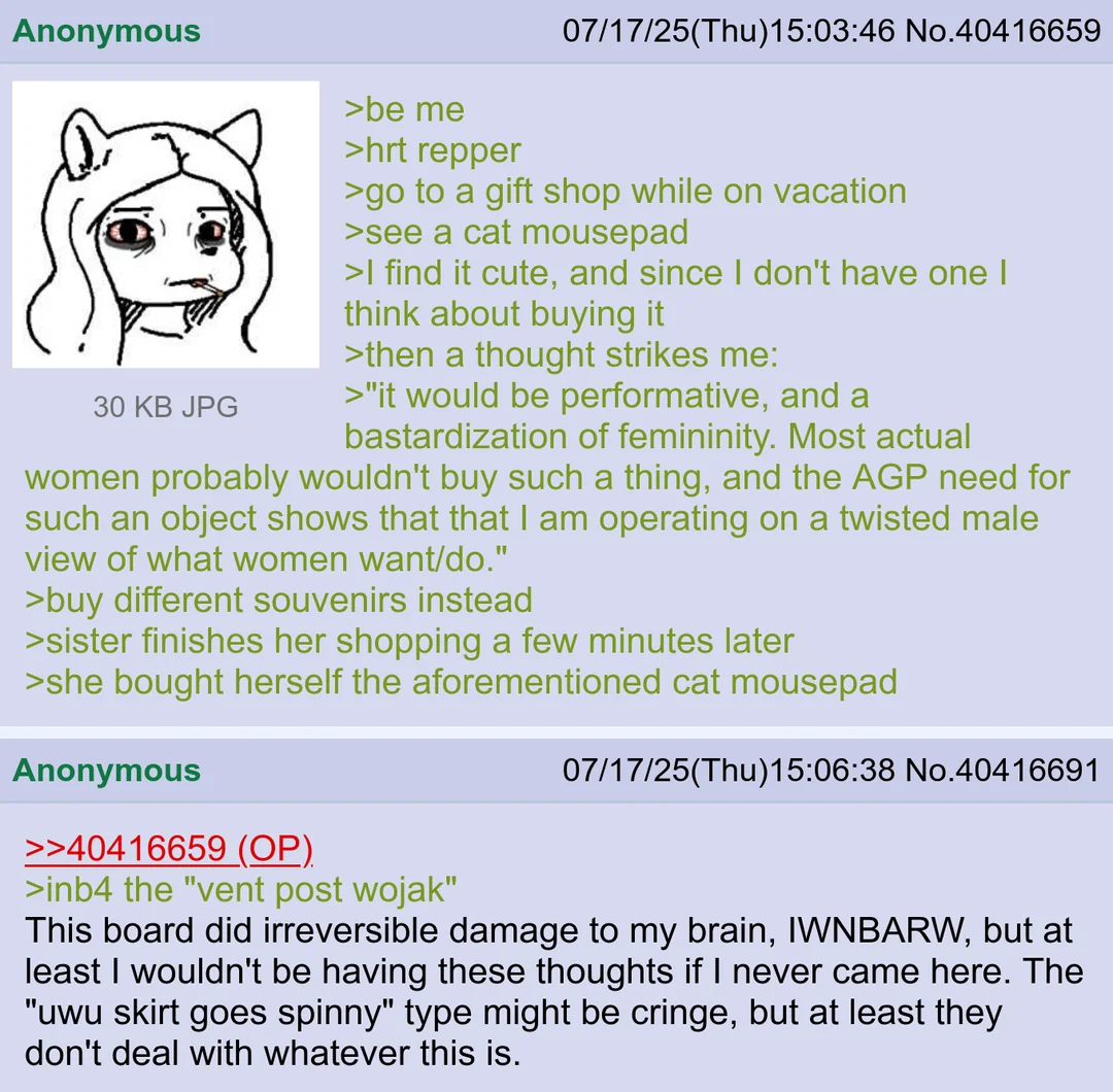 yeah this level of ocd brain about femininity is what makes 4trannies turn out utterly miserable even if they pass