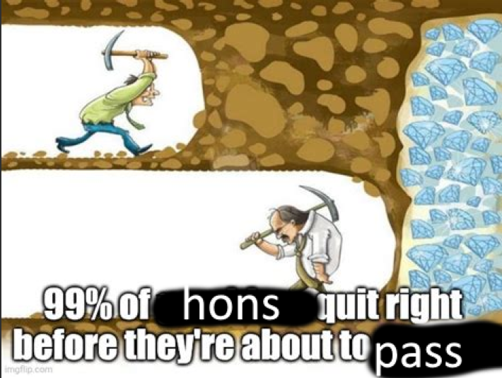 99% of hons quit before passing