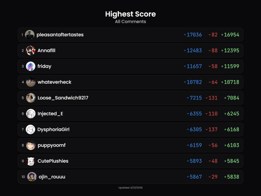 !leaderboard mostdownvoted me