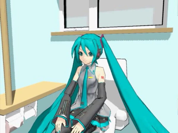 miku piss blue like commercials bout periods -> blue blood refers to miku??
