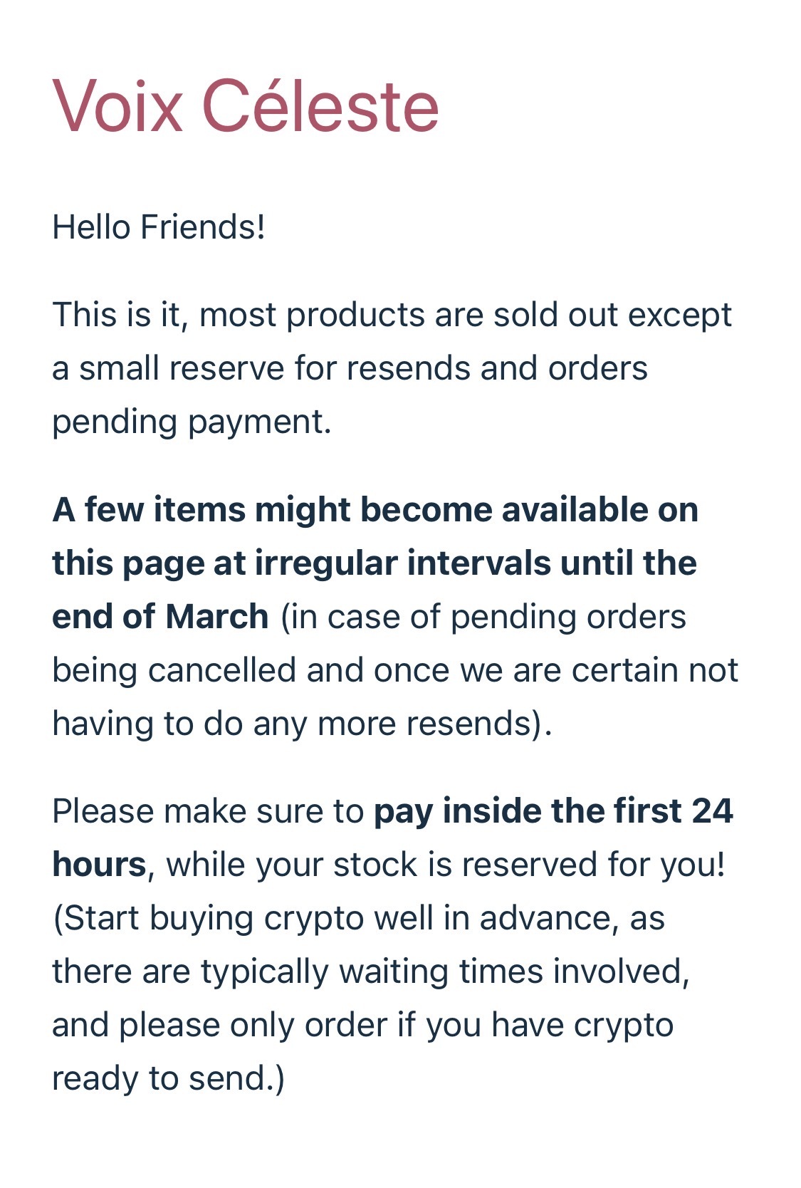 Voix Céleste has this message on their page, they dont seem to talk about anything scary, hope it gets back to normal