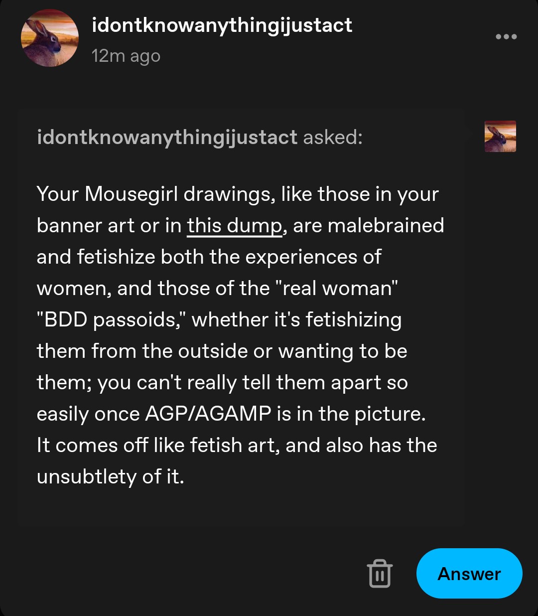 it feels like the only reason they’re engaging is to try and hurt you (which is par for the course with terfs so yk. not that shocking.)