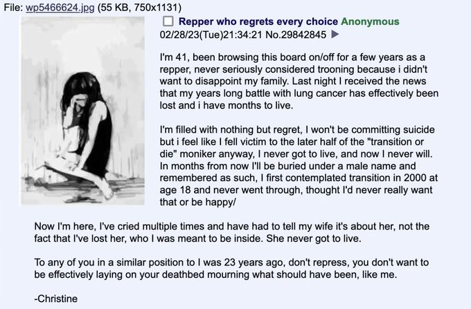 there were a few greentexts about some reppers sharing their regret in well worded ways but i cant find them please share if u have them or anything similar