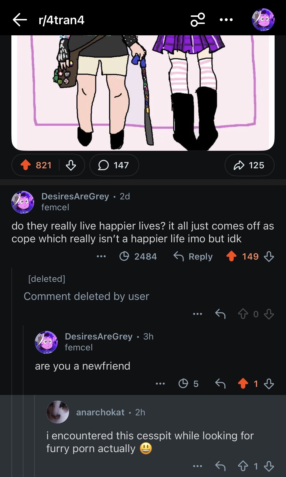 minus-squareRacketlinkfedilinkarrow-up6·1 month agocalling 4tran a cesspit while looking for furry porn