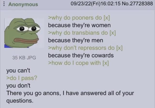 4tran4•do yall ever think trannies will be actually accepted by society