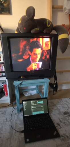 3·12 days agoonly larping as being retro with the slightly wrong thinkpad(this is the t480s, which isnt actually particularly repairable, i got it bc it was the most affordable lightweight laptop i could get) and the cheapest hdmi 2 rca adapter i found on amazon is more spiritually agp than actually doing it correctly
